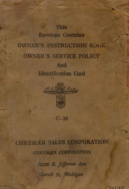 1946 Chrysler Owners Manual Envelope 001