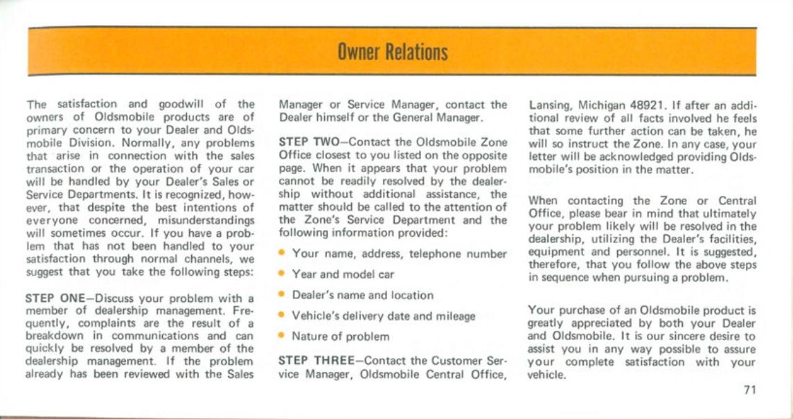 Index of /static/NA/Oldsmobile/1971 Oldsmobile/1971 Oldsmobile Cutlass Owners Manual